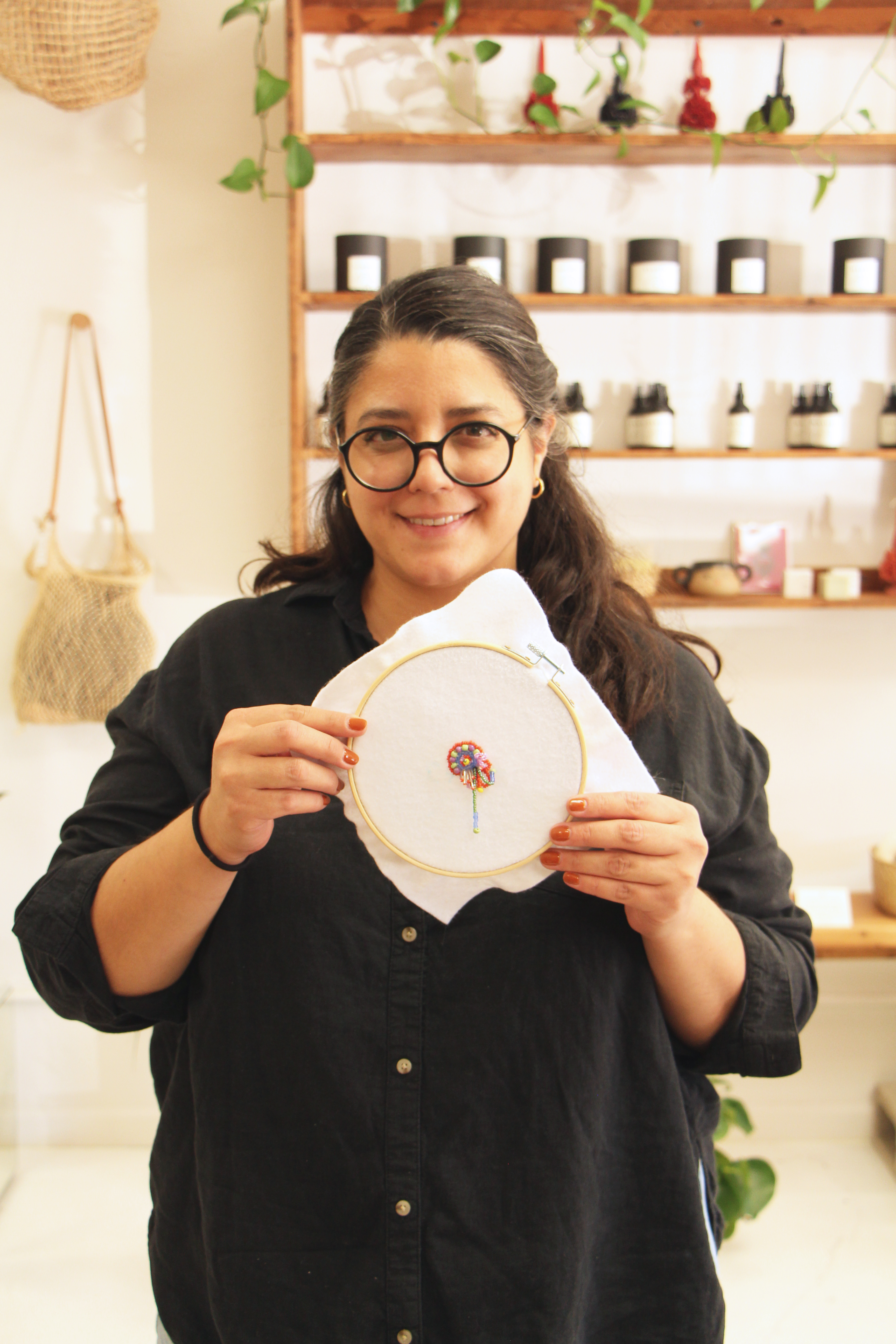 In this course you will learn to embroider with glass beads by adding texture, color, and dimension to your designs. Integrating different stitches and techniques to create your own embellishment piece. We will begin by making a small circle with a few rows of different stitches with beads and from there you will be able to elaborate the piece into your own design using the techniques learned.